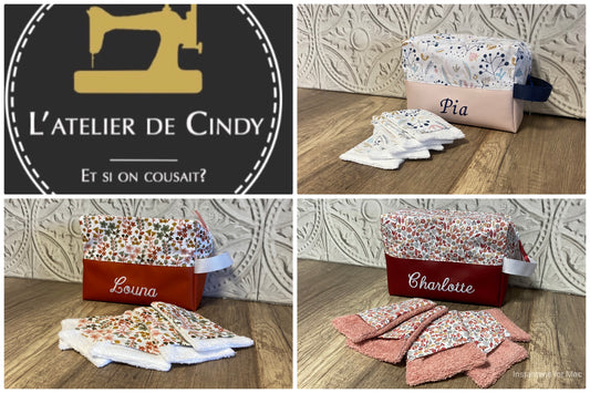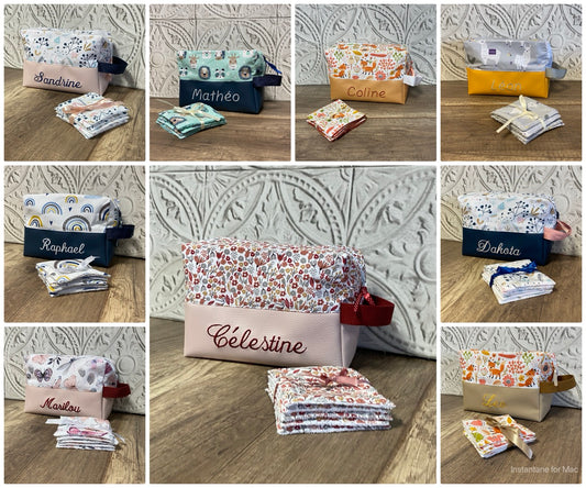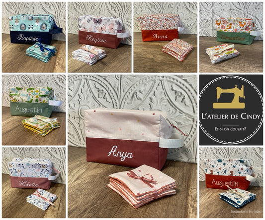 LOT trousse de toilette personnalisée et 5 cotons lavables