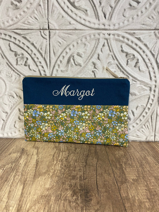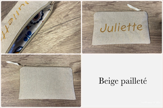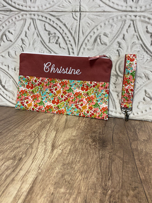 LOT Cadeau PERSONNALISÉ : Pochette brodée + Porte-clé assorti