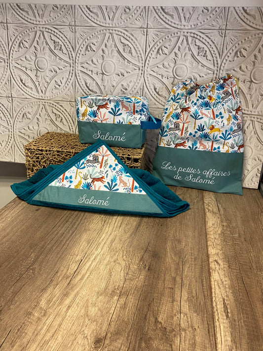 LOT Trousse de toilette Personnalisée & 5 gants de toilette enfant