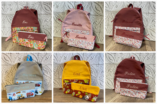 LOT sac à dos & trousse école personnalisé MOTIF AUX CHOIX