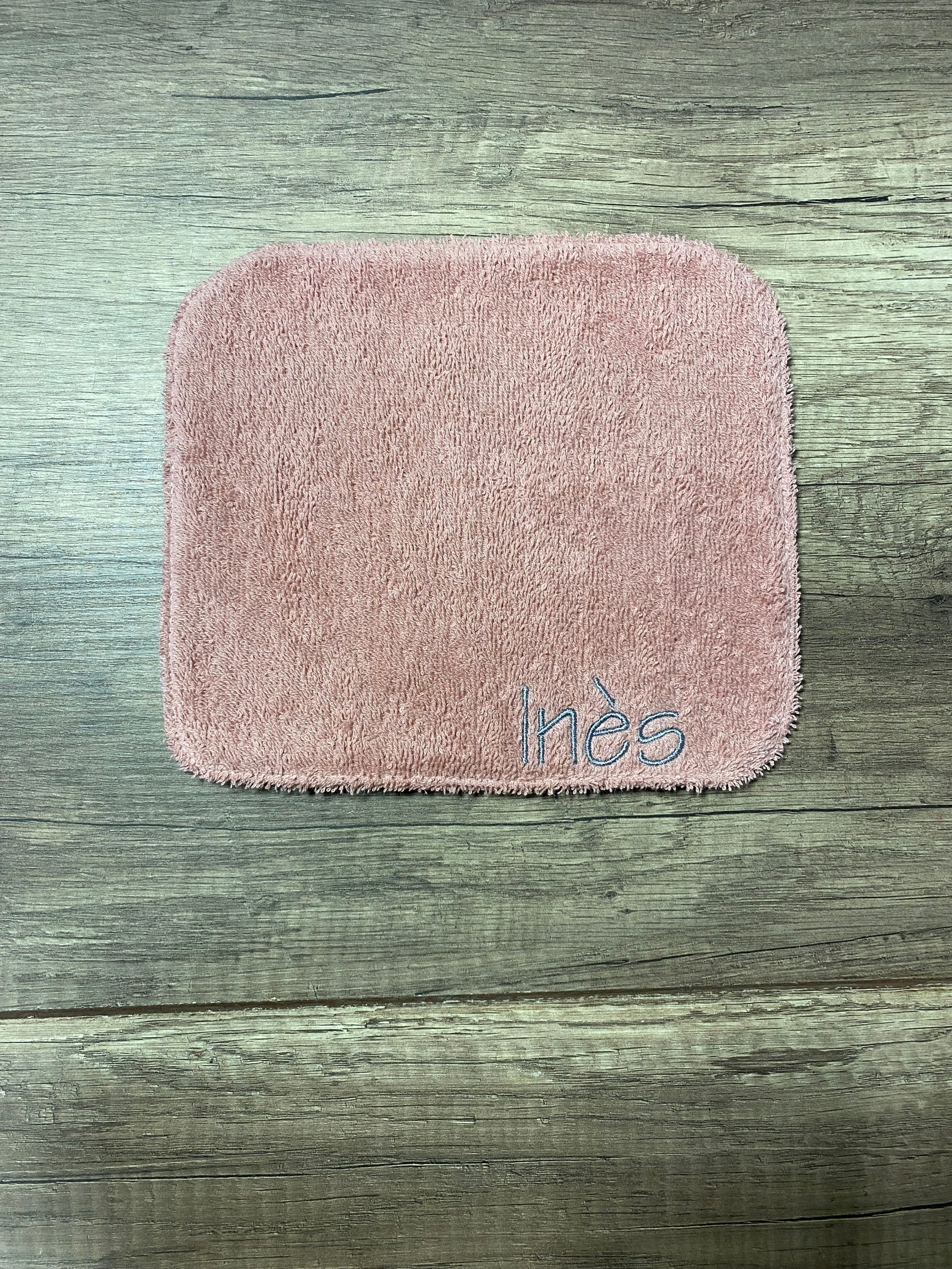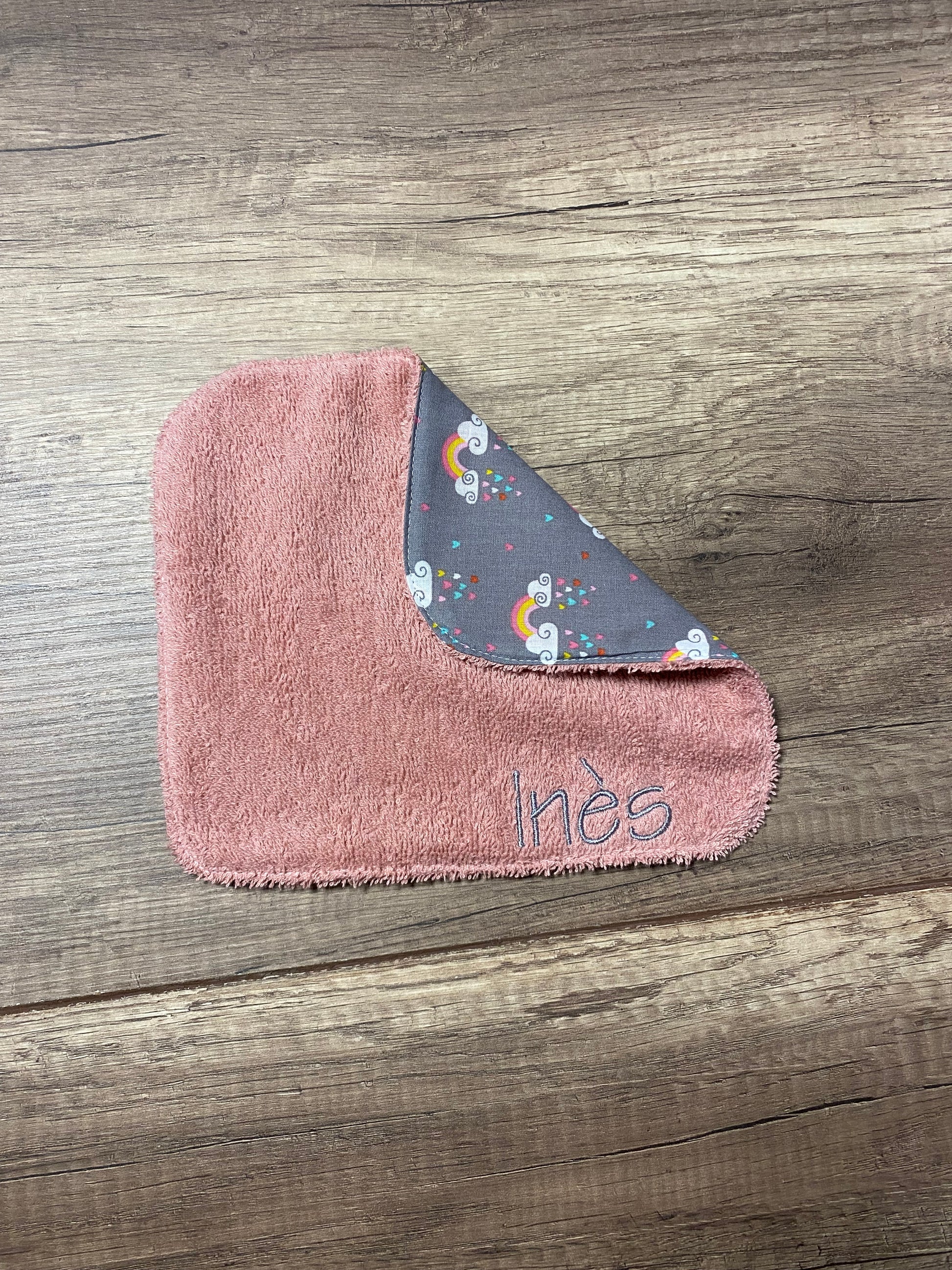 et un côté en éponge toute douce, brodé avec le prénom de l’enfant en bas à droite.