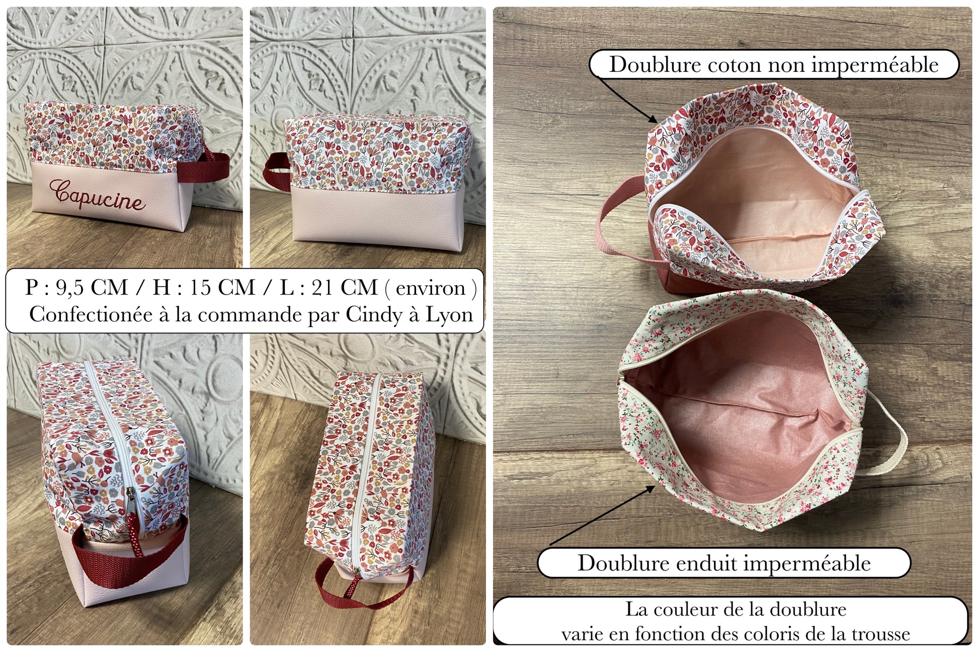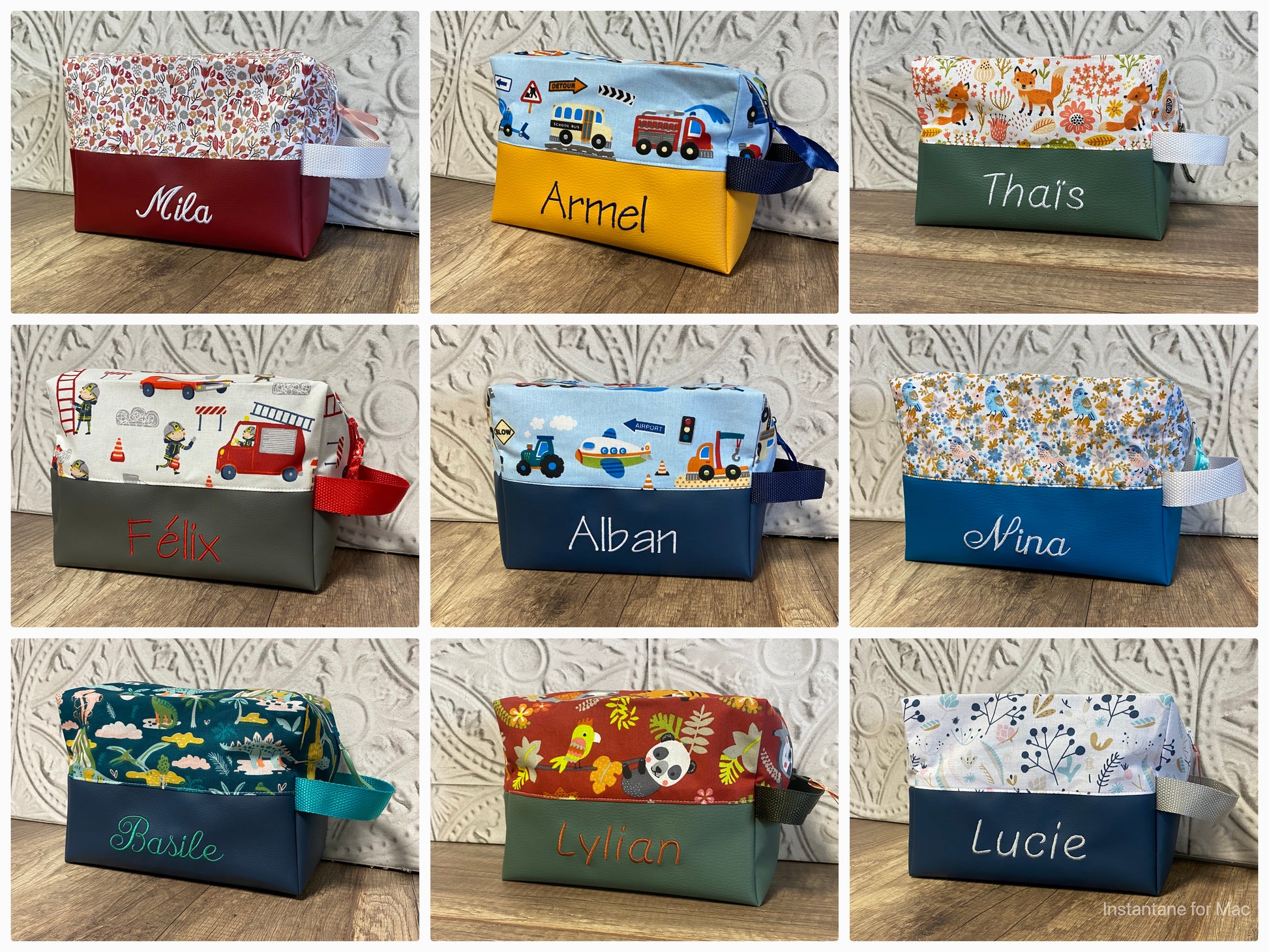 Trousse de toilette Personnalisée - bas simili cuir MOTIF AU CHOIX